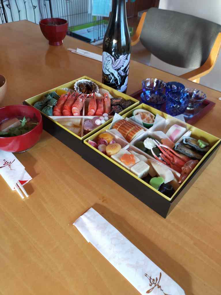 1月1日 (木) おめでとうございます。 昨夜からの続きでお節はまだまだあります。 長女が買ってきた青森の酒「田酒」は入手困難な幻の酒らしく、神棚にお供えしてから頂くことにしました。 発酵しているらしく、栓を開けると「ポン!」とスパークリングの様にはじけた。一口目の印象は「甘口」と感じるが、二口三口目と次第に変化する。 料理によっても美味しさが変化する美味しい酒である。 一四代を初めて呑んだ時も旨かったが、似た魂を感じた。 今年も平穏無事に行きましょう。 |