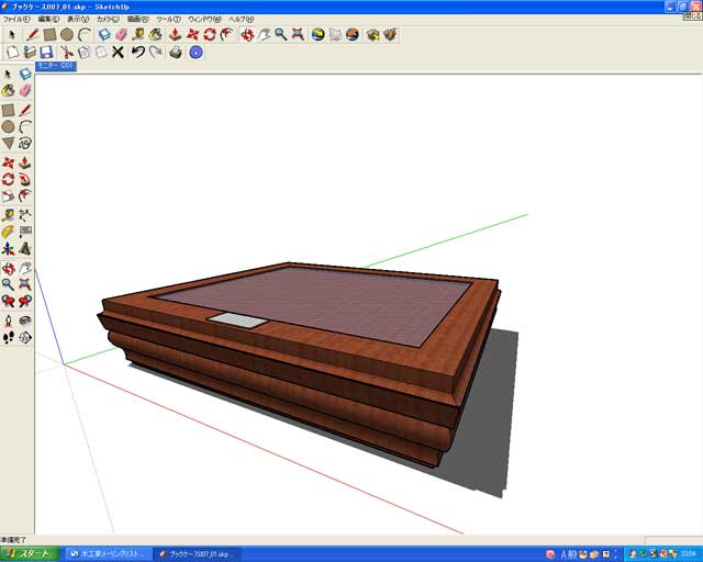 10月23日 (金) バージン お客様へのプレゼンもそろそろ3Dだよな〜〜。そんな訳で今日1日根を詰めPCに向かう。 巷で噂の sketch up!! 無料のソフト。1日踏ん張ってここまで何とか!!CAD図面から拾ったから寸法も正確である。初めてにしてはよく頑張った。大したもんだ。 |