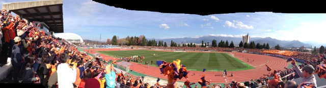 11月30日 (日) 目指せJ2! 店長が実習で店はお休みです。 てな訳で、あっしも久々の日曜休み。で、久々パルセイロの応援に行ってきました。 観客約9000人、長野にしては大入りでした。 結果0-0のドロー、讃岐の方が早い展開のいいサッカーをしてたかな。どちらにせよ排水の陣です。12月7日には決まります。 目指せJ2!!! |