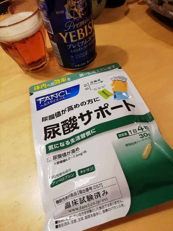 12月6日 (金) 尿酸値 ウエブ広告で釣られてまんまと定期購入した尿酸サポート。 先月の定期検診の結果が届き驚いた。 7.0〜8.0をウロウロしてた尿酸値が6.2に落ちた。 毎日4粒を推奨してるのだが、2粒だったり飲まなかったりといい加減だったのに。 まっ基本、薬(サプリ)は嫌いだから自己免疫力を上げていこう。 |