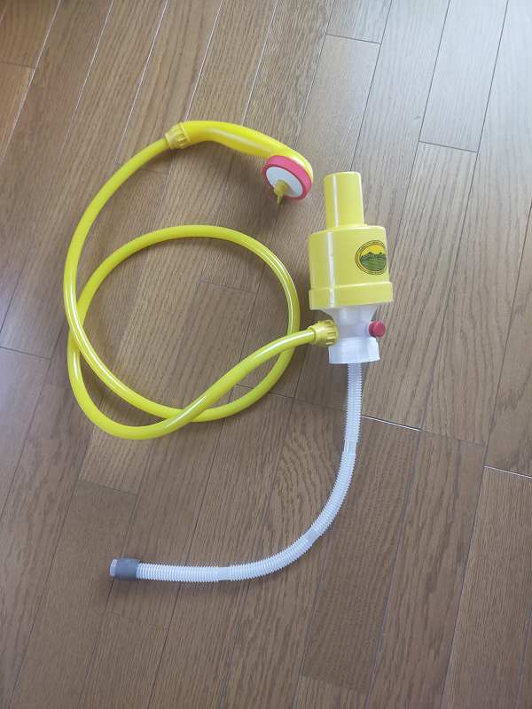 4月19日 (水) シャワー 給湯器が壊れててもシャワーくらい浴びんと臭くて村八分にされてしまう。 てなわけで簡易シャワーを買った。 黄色のヤツは手動の圧縮ポンプ式。 ポリタンクにお湯を貯め、空気を圧縮して送りこみ、 その圧でシャワーヘッドからお湯を出す、誠にエコロジーなシステム。 これと同じシステムで、灯油ポンプも持っているので、使い勝手の良さは判っていたが、常にポンピングしていないとお湯が止まり、まったくもって使えない。 メイドインジャパンなのだが、灯油ポンプのそれとはまったく違う。シャワーヘッドの為か? この使えないヤツより先に買ったのが、黒いやつ。 期待してなかったが、非常に良い。 システムは残り湯を洗濯機へ送るお風呂ポンプと同じで、ポリタンクにポンプを入れ、つながれた充電式バッテリーのスイッチを入れるだけ。20Lのタンクを出しっぱなしで、頭から体まで十分に洗える。シガーソケットも付いているのでアウトドアーにも向いてる。お勧めの一品です。 |