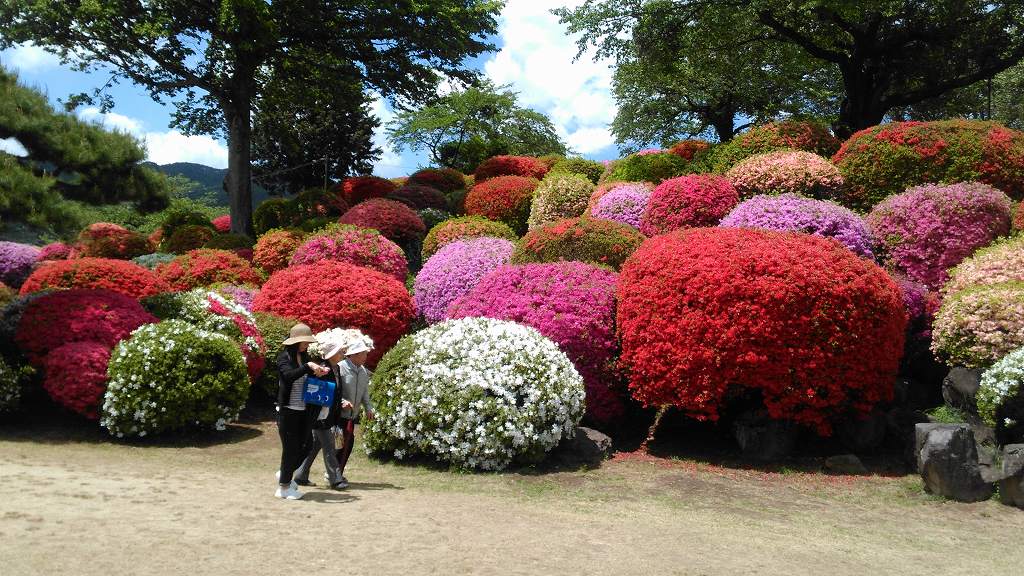5月13日 (水) 笑うしかない 女房とつつじを見に行く。 「なにこれ!」「なにこれ!」 もう笑うしかない。笑いしかでない。 詫び寂びの日本人美意識を超越した幸せ色。 心の底から湧き出る幸せ笑い。そう、笑うしかない。 |