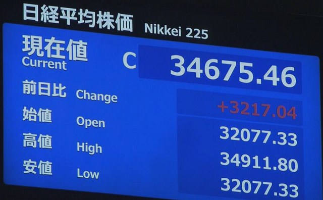 反動から、今日は上げ幅が一時3400円を超え、取引時間中としては過去最大らしい。