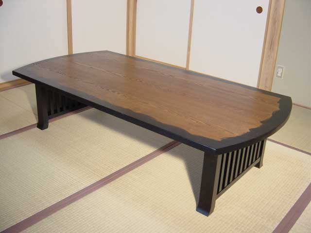 ◆「年輩になると座布団は疲れます・・・、かといって疊の部屋にダイニングテーブルと椅子は ・・・、お客様にお茶の給仕も立て膝位で出来る高さで・・・。」そんなお客様のオーダーで生まれた腰掛ける座卓と
