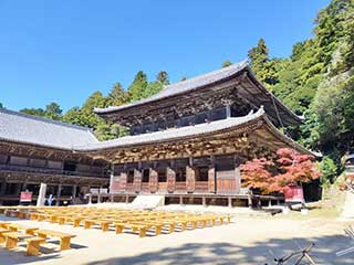 圓教寺は書写山一体に開かれた数十の天台宗古寺群です。 まずロープウェイに乗り山頂駅まで行きます。そこから歩く人もいればバスに乗る人もいますが迷わずバスです。このバスが急な登坂悪路を結構なスピードで走ります。ちょっとしたアトラクションです。 |