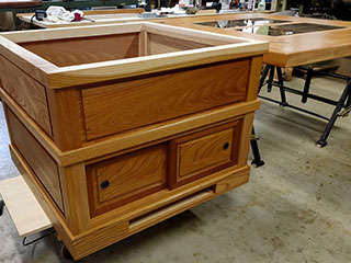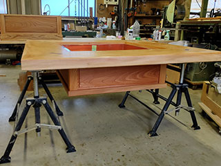 今回の囲炉裏はテーブルでも座卓でもご使用頂ける設計です。 また、お客様のご要望で蓋の部分にガラスを使いました。これは灰に描いた紋様を愛でて楽しむ為です。なかなか乙ですな。 さてだいぶ形になって来ました。 では又参話でお会いしましょう。 |