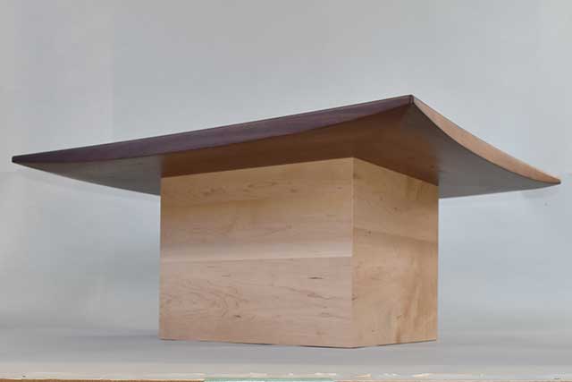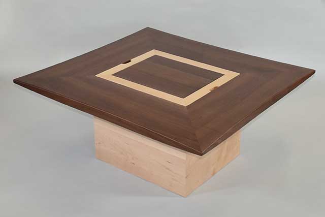 | ◆お客様はこちらの囲炉裏を見てご注文されました。当初はウォールナットでのご依頼でしたが、何度かのお打ち合わせを経て脚材と蓋の框にメープルを使うデザインに変わりました。なかなか斬新で良いですね。それに同じ木でもこれほどの違いがある事に改めて自然の偉大さを感じます。 | |