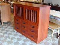 | こちらのページは和箪笥や桐箪笥の製作例です。ご紹介しているのはほんの一例です。お客様の用途に合わせ、今までたくさんの注文家具を手掛けて来ました。全ては自由設計の注文製作になります。ご予算、サイズ、色、材質などお打ち合わせの上、図面と見積もりをお出し致します。(無料) まずはお問い合わせフォームからお気軽にご相談下さい。 水屋箪笥製作の詳しい過程は◆スコフィールドさんと海を渡る水屋物語◆Hさんちの水屋物語を ご覧ください。 |