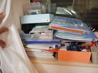 | ◆手前鍵付きの抽斗はA4クリアファイルが横入れで収納でき、中央の4段には書類や印鑑などの小物。奥の二段にはDVDが入ります。A4クリアファイルとDVD部分には三段引きスラードレールを使用していますので抽斗全体が引き出せます。 | ||||||||||||||