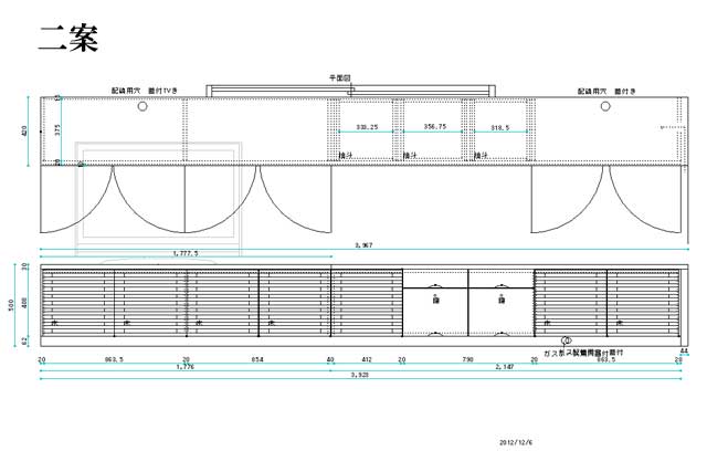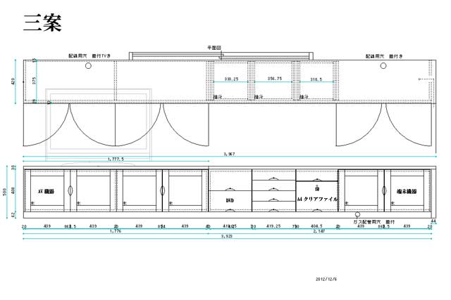 | ◆テレビボード◆材質:タモ◆仕上げ:ウレタン ◆幅3923×奥行き420×高さ500 |
