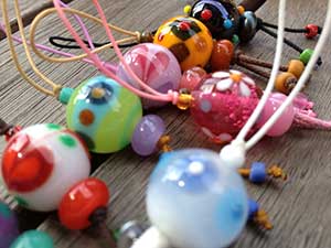 ◆トンボ玉のワークショップを開催致します。 世界に一つだけ、オリジナルのトンボ玉アクセサリーを作りませんか。安藤ひかりさんとスタッフがバーナーワークでの製作を指導します。芸術の秋ですね、時間を忘れ物作りに没頭しませんか? 先着15名 |